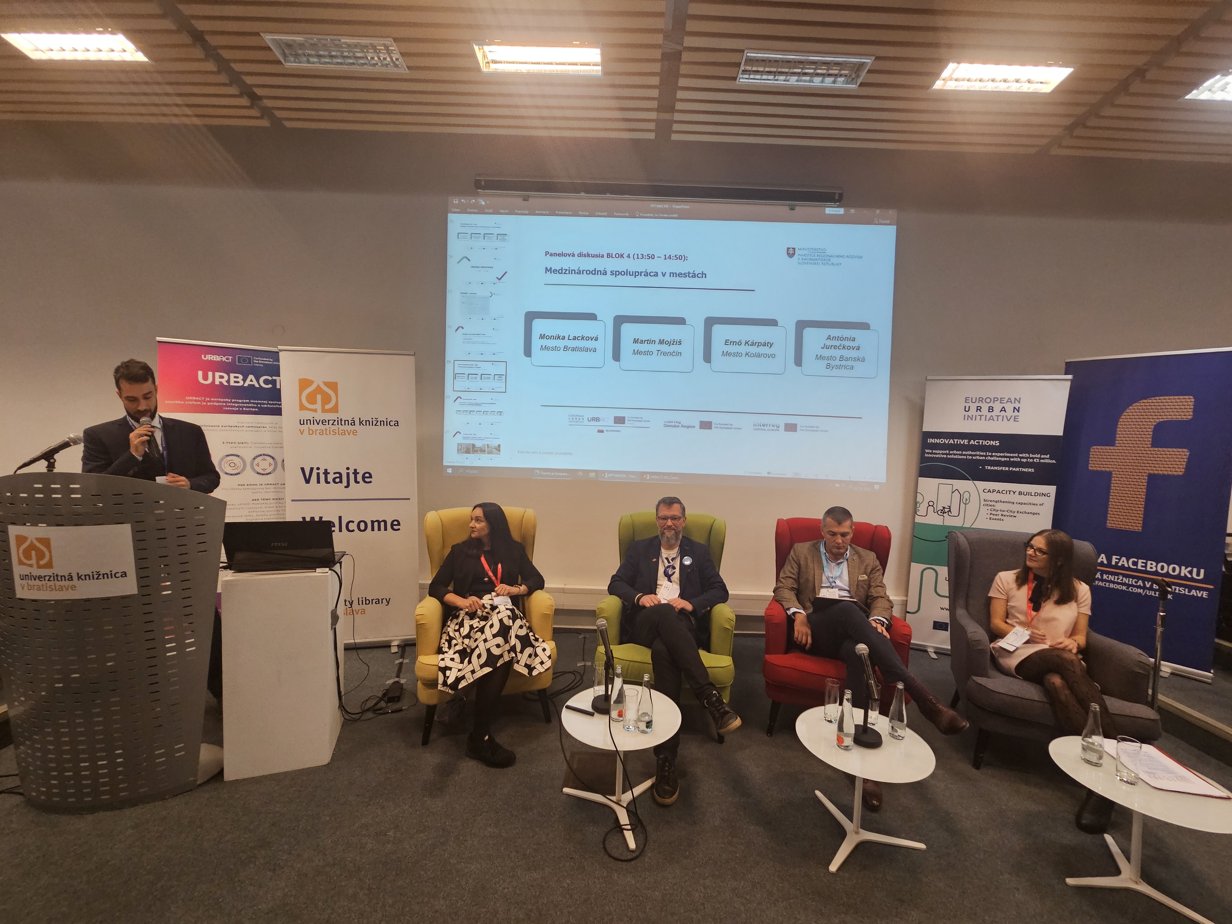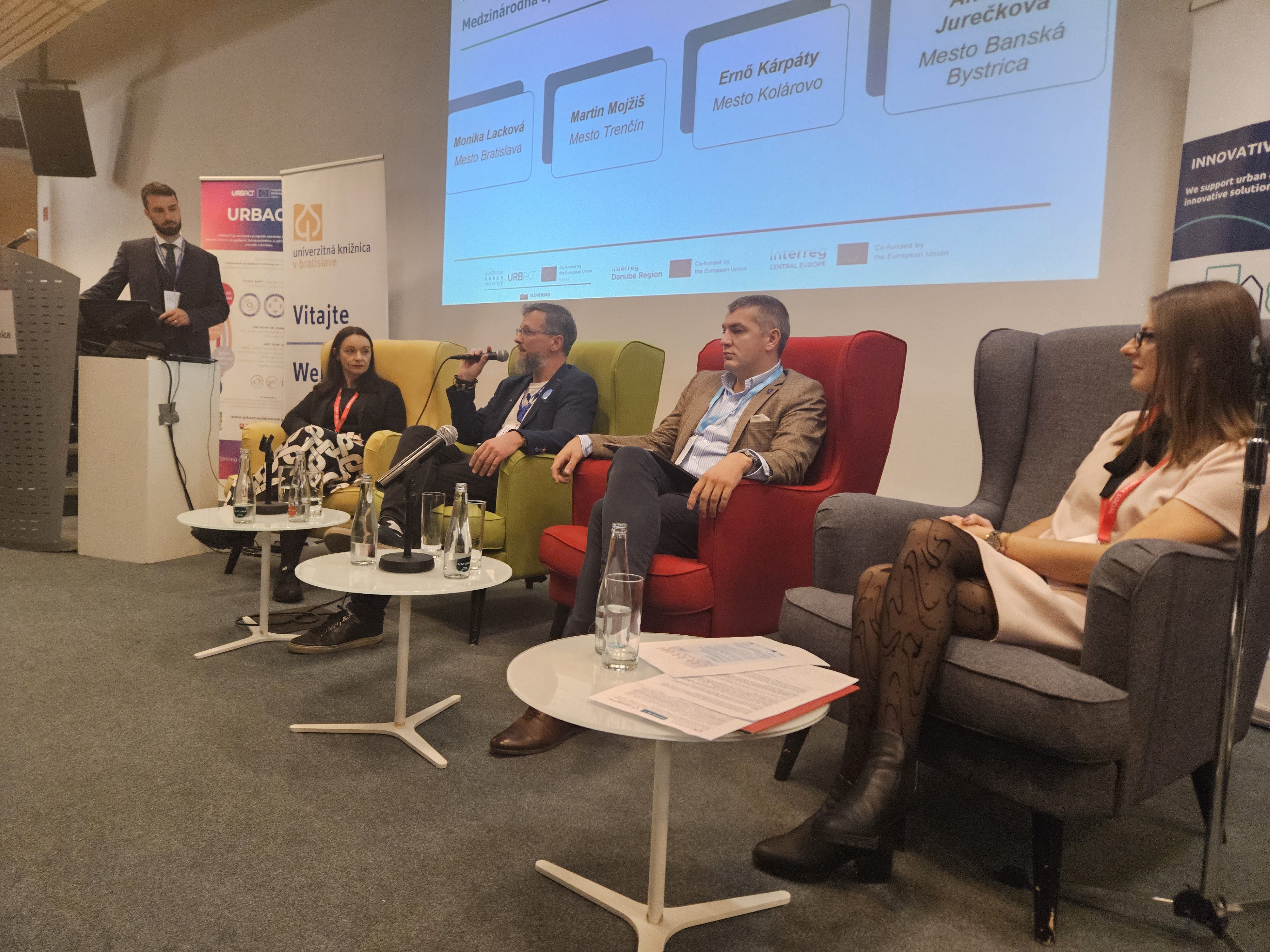 V panelová diskusii: Medzinárodná spolupráca v mestách: Mesto Bratislava (Monika Lacková), Mesto Trenčín (Martin Mojžiš), Mesto Kolárovo (Ernő Kárpáty) a Mesto Banská Bystrica (Antónia Jurečková)